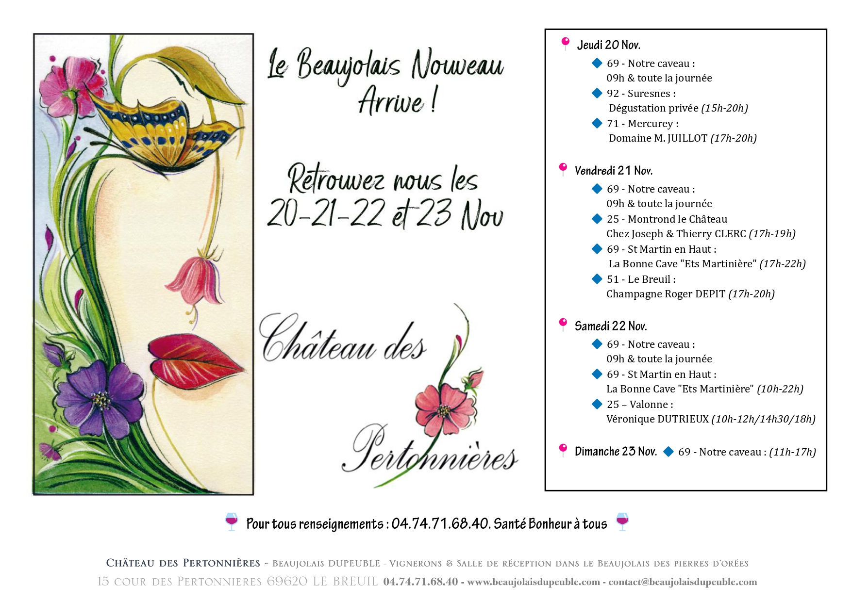 Pour tous renseignements : 04.74.71.68.40. 🍷 Santé Bonheur à tous 🍷
