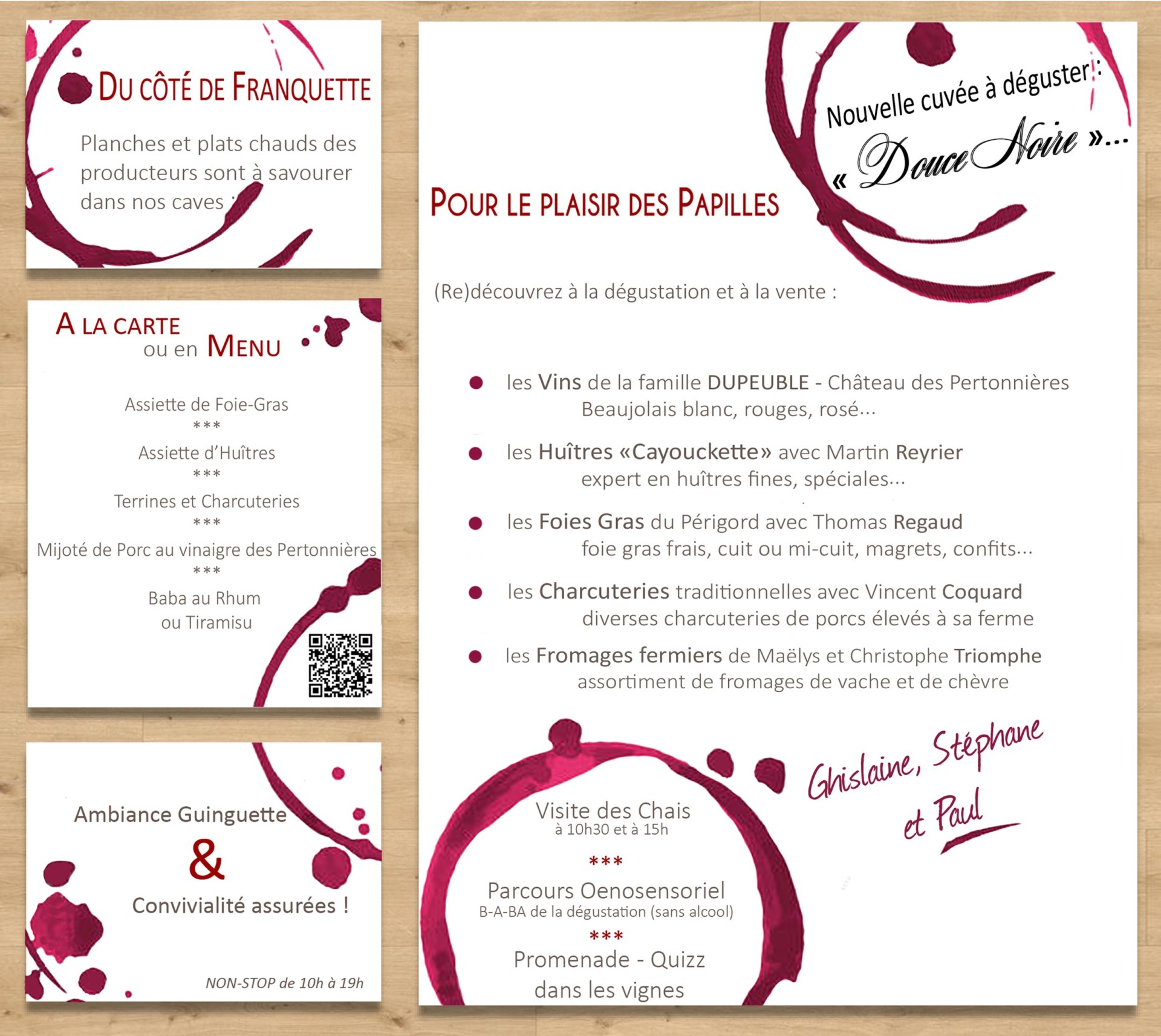 Venez déguster les planches et plats chauds des producteurs dans nos caves